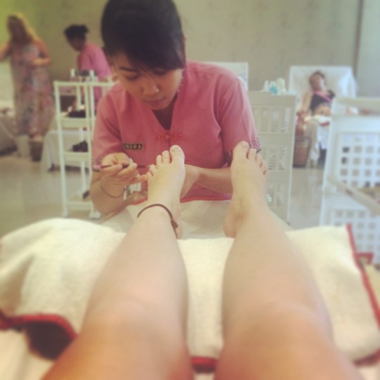 These treatments swallowed my afternoon and so I headed back to the hotel for my pedicure where I would be getting my feet completely done over. I’ve had really bad feet for quite some time now due to walking everywhere. My heels have become hard and cracked and I’ve been soaking them at home daily to make them softer. I realise now that an Indonesian pedicure is the way forward! It only cost me £10 and they’ve completely removed all the skin from my heels, it’s like having new feet! I’m so impressed with it I’d definitely recommend it if you can get to a spa although I’d imagine it’s quite a bit more expensive outside of Asia! They even put my feet in candle wax, felt amazing!