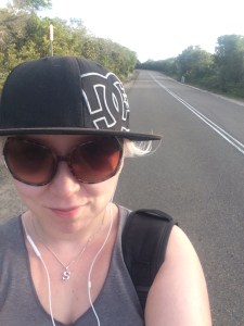 Nice big open road there in Australia.. No cars at all. Infact not a single car for quite some time so I get my phone out of my bag to take a middle of nowhere selfie.. Niceee.