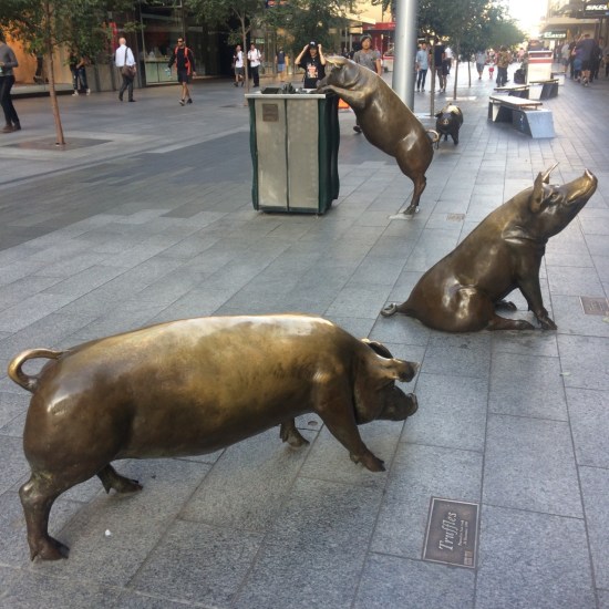 Then we headed for the city where we walked around the gardens and enjoyed a typical burger fast food joint lunch. We didn’t do much in Adelaide but I enjoyed walking around the shopping centres. Above is pictures of the sculpture put outside the mall.. I love these pigs I think they look great!
