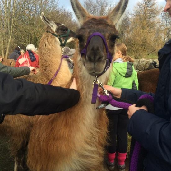 We walked 1.5 miles up and down the hills of Nidderdale and through the sticky mud admiring the beautiful views of the Yorkshire dales. Just me, Ant, 2 alpacas and 9 llamas on a Saturday stroll.