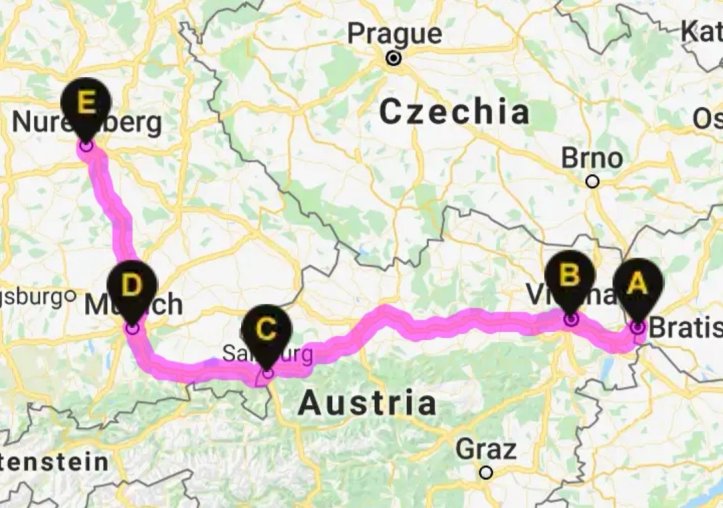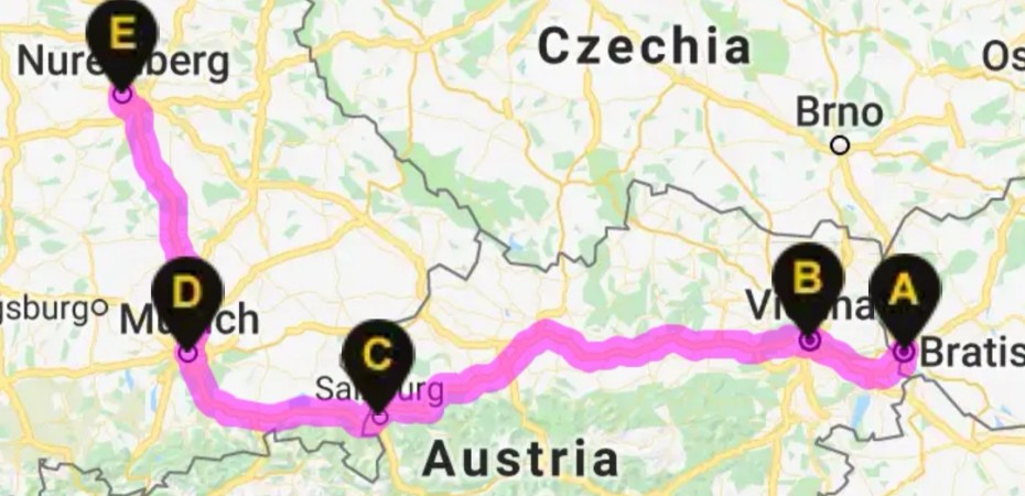 Bratislava > Vienna > Salzburg > Munich > Nuremberg