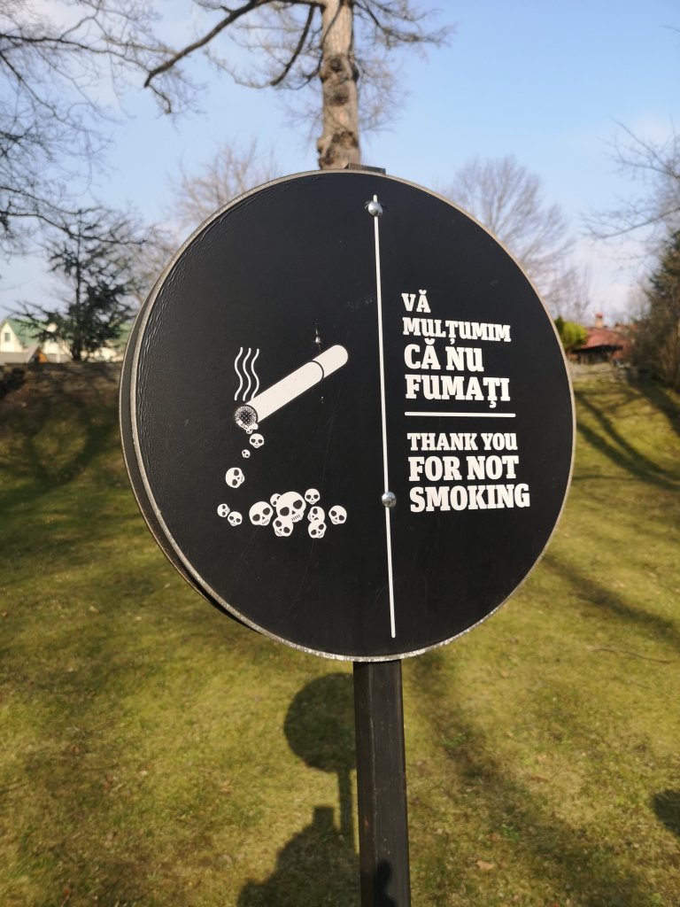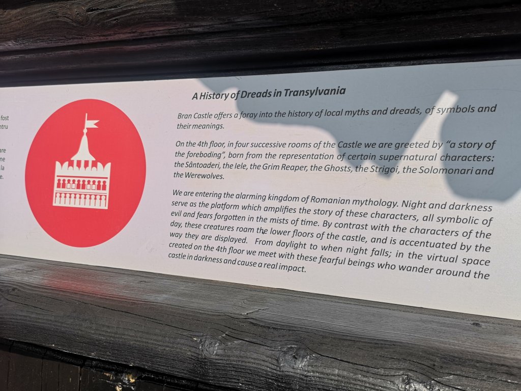 We walked around the castle rooms for a short while before exploring the grounds. Here I got to admire the creative signage Dracula has featured to get some important messages across!