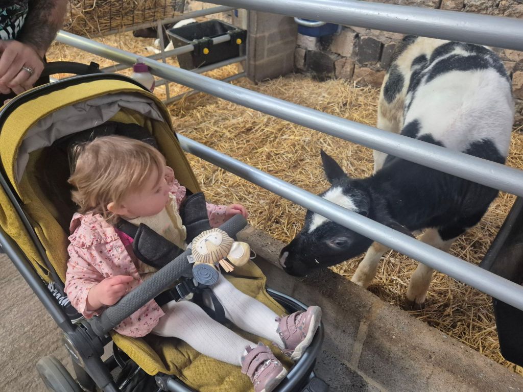 Straight across from the lambs were the calves. I haven’t seen a calf before if it’s not far away in a field and these were very cute. My daughter absolutely loved looking at the calves and she was waving hello to each and every one of them!