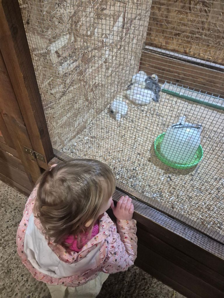 I think this was probably her favourite part of the farm. I’ve never seen animals freely walking around allowing you to touch them.