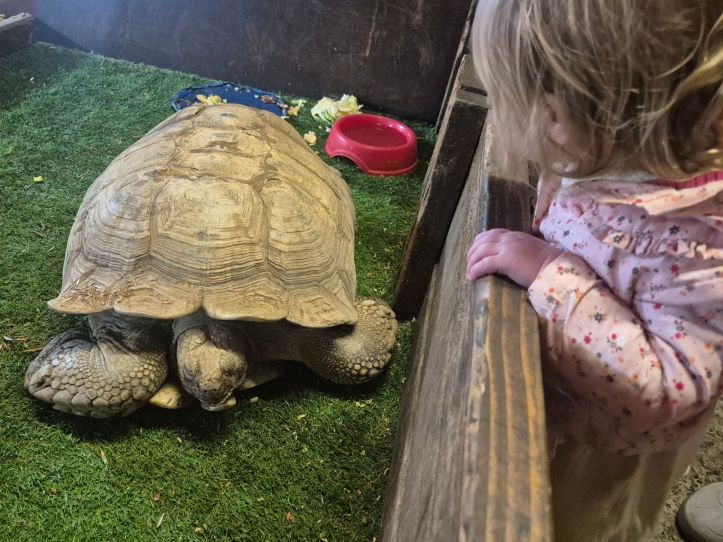 After we’d seen the farm animals we moved into a smaller room which was home to the tortoises; these were massive! They were within reach and when they came closer you could touch them if you wanted to. Maybe not the most appealing animal to stroke but hey the chance is there!