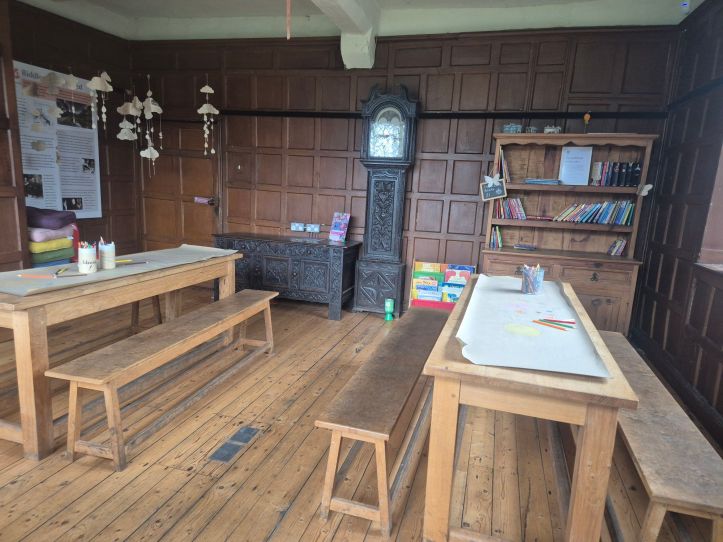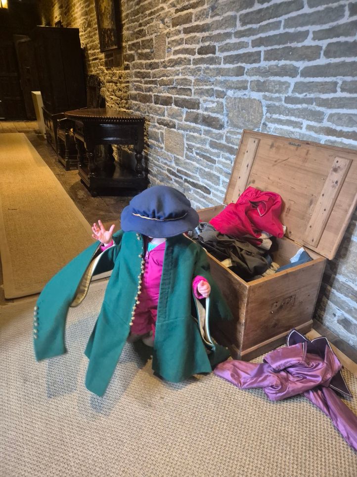 The hall features a cute little shop full of trinkets, a small seating area for food and a tea rooms upstairs (not dog friendly). Inside you can explore the hall with rooms set up as they would have been many years ago. With a toddler, I didn’t get chance to stop and read about the history but she did enjoy the dress up box!