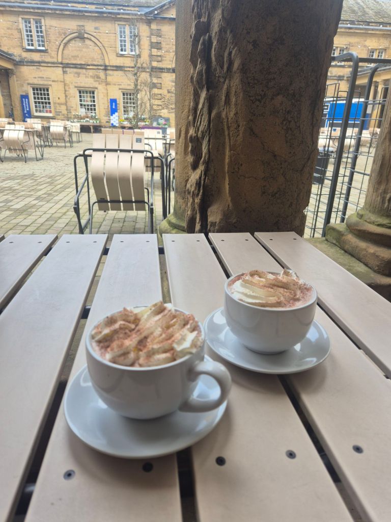 After the loop around South Park Walk we headed for the Lakeside Walk via the courtyard. It was nearing lunchtime so we chose this spot to sit outside and enjoy a hot chocolate from the cafe. Not the best I’ve ever tasted but hey they did give us free marshmallows and whipped cream for taking so long!
