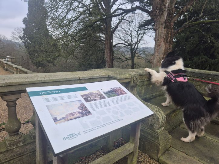 The inside parts of the courtyard weren’t dog friendly so we found a table outside under cover and perched. Here we enjoyed our pack-up in a dry sheltered spot! Of course, as always, Newkee got lots of attention from every single visitor to Harewood House that day!