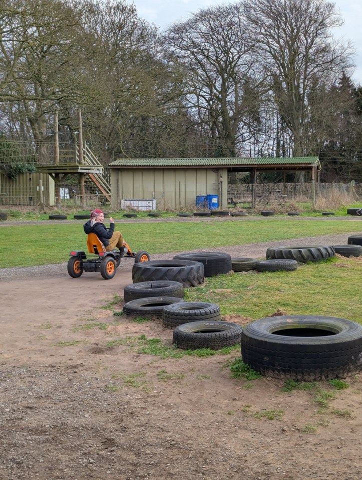 It was half term so we were expecting it to be super busy but thankfully it was pleasantly quiet. A lot of the outdoor activities were aimed at older kids meaning our 1 year old was a little too small for half of it but she did enjoy riding on the karts – As did I! We had a lot of fun cycling around the little track.