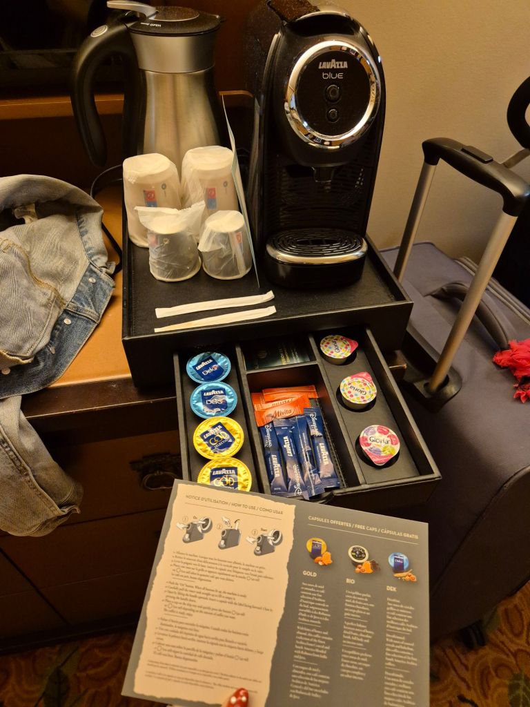 When we reached our lodge room we were so excited and impressed by the facilities! First time I’ve ever been in a hotel that provides you with a fancy coffee machine and complimentary pods! We don’t even drink coffee yet found ourselves making the most of these from the moment we arrived! Haha. Can you tell we may have got a little used to our budget caravan stays?