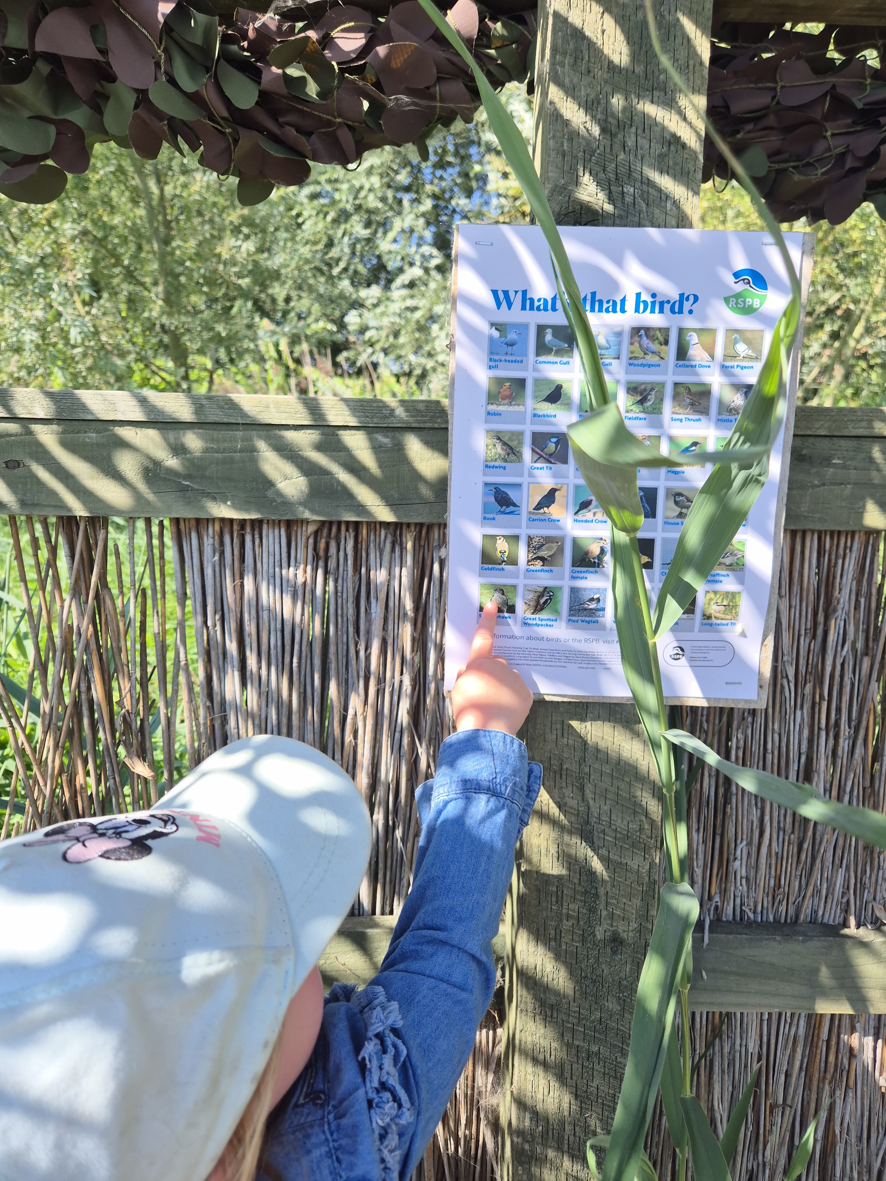 When we did reach a hide there was a sign about some of the birds you can see on the trail. At least there was something engaging for little ones but it is a shame there wasn’t more. I do enjoy seeing the little sculptures and creative activities you often find on the other RSPB reserves.