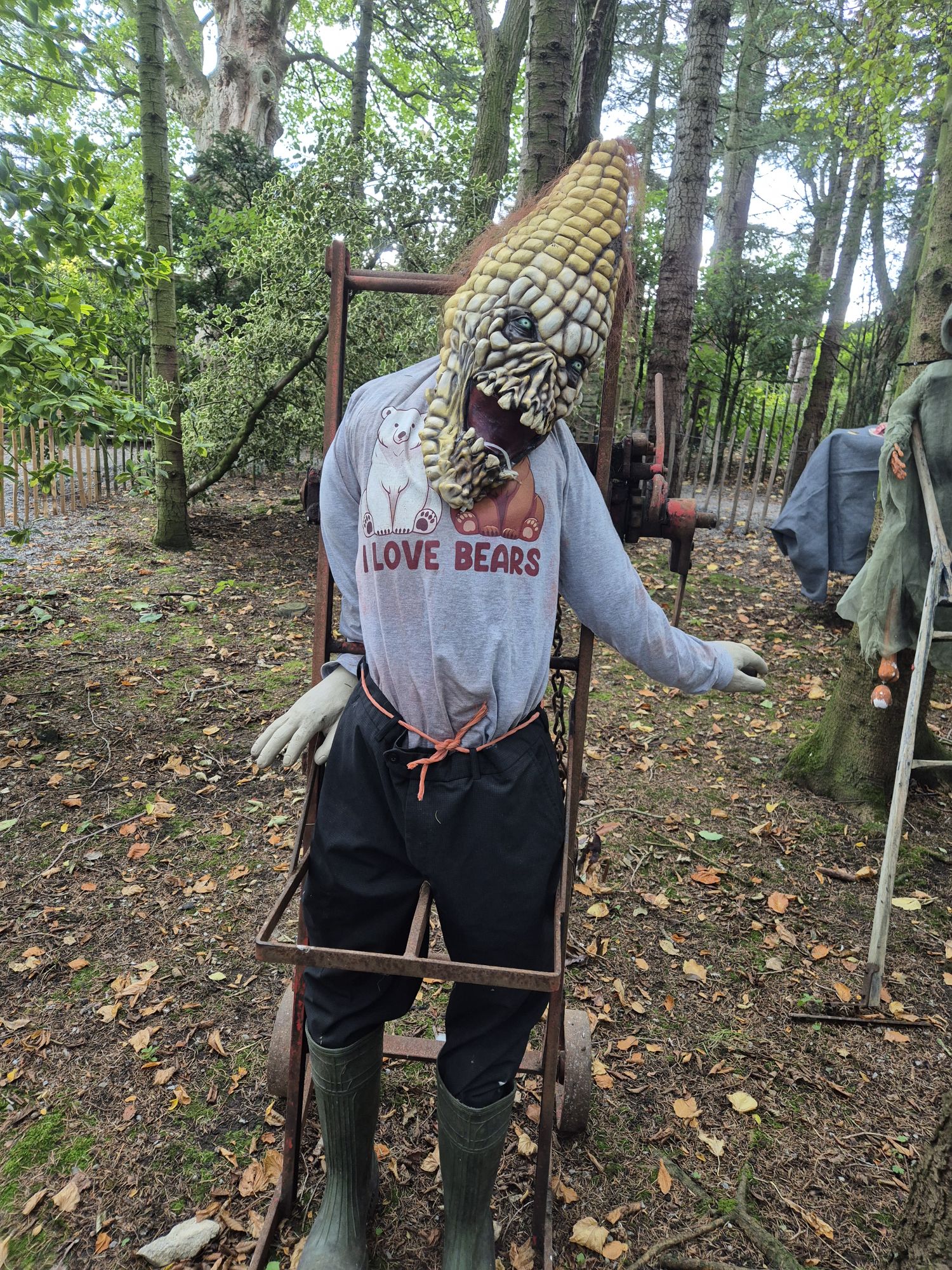 We also enjoyed the bears in the woods but I must admit the creepy corn man that we couldn’t avoid crashing our photos was purely terrifying!