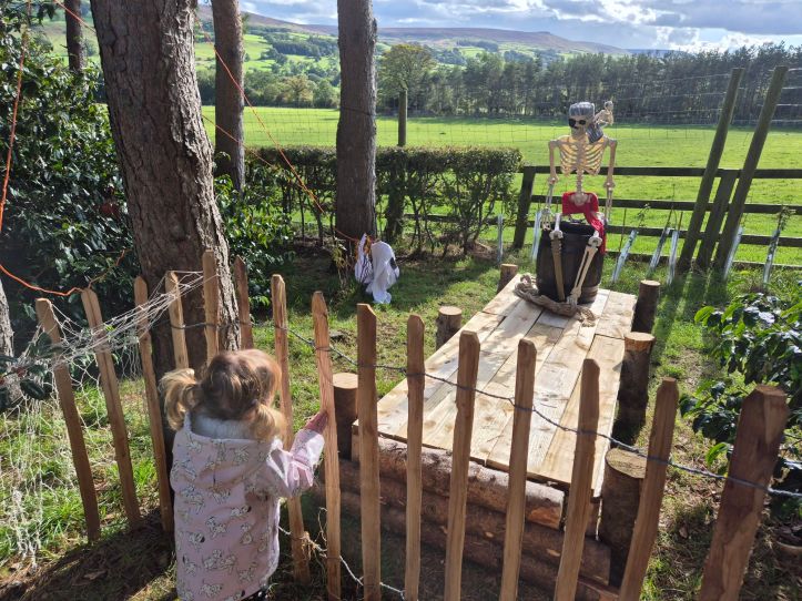 The first thing I noticed was lots of skeletons and ghosts and as we hadn’t been here before I didn’t know if this was normal for The Forbidden Corner or if it’s because we are nearing Halloween!