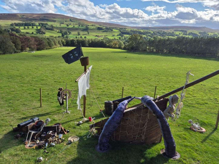 After our break we walked along the walls overlooking the dales. You can really admire the setting here and it definitely feels like you are in such a strange corner of the world. It is very remote and not what you’d expect to see out here at all. How often do you spot a pirate ship out in a field?