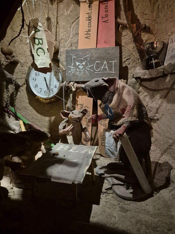 In the underground mazes we came across an assortment of rats in the ‘pub’. Thinking about this, it wasn’t just strange it was incredibly creepy. I don’t know who comes up with this stuff!