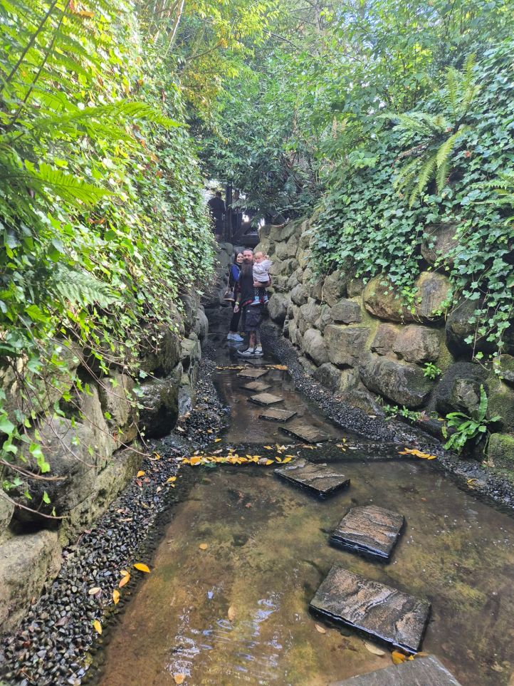A lot of the features incorporate water which is always a hit with kids. We really didn’t want to get wet and managed to avoid this on the stepping stones. Unfortunately Hilda wasn’t so lucky when it came to one of the statues who managed to soak her little feet when we ran past!