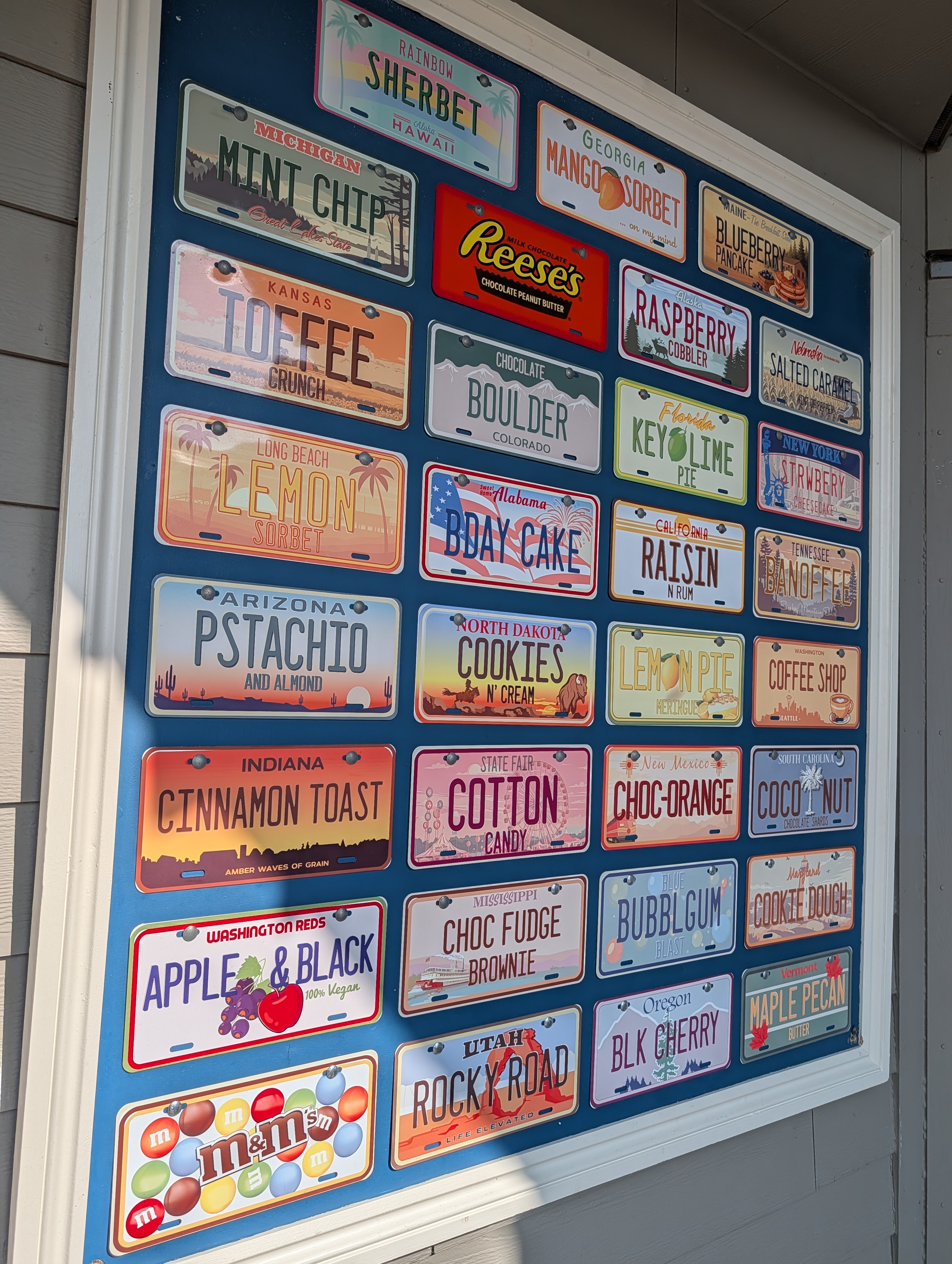 We’d never visited Billy Bob’s before so had no idea what to expect. When we entered the restaurant to have a nosy at the menu we were instantly enticed by the place. The music was blaring Elvis and hits from Grease whilst the smell of hamburgers lingered, transporting us straight to the States! I was instantly reminded of my times living in America and it really made me want to head back. I lived in Wisconsin for a brief period in Door County. I would always visit Wilson’s in Ephraim for the greatest ice cream and i’d enjoy it by Lake Michigan in the sunshine. Little blast from the past led me to this old blog post about my time living there. I loved the decor at Billy Bob’s, especially the American licence plates featuring all the ice cream flavours – What a unique touch!