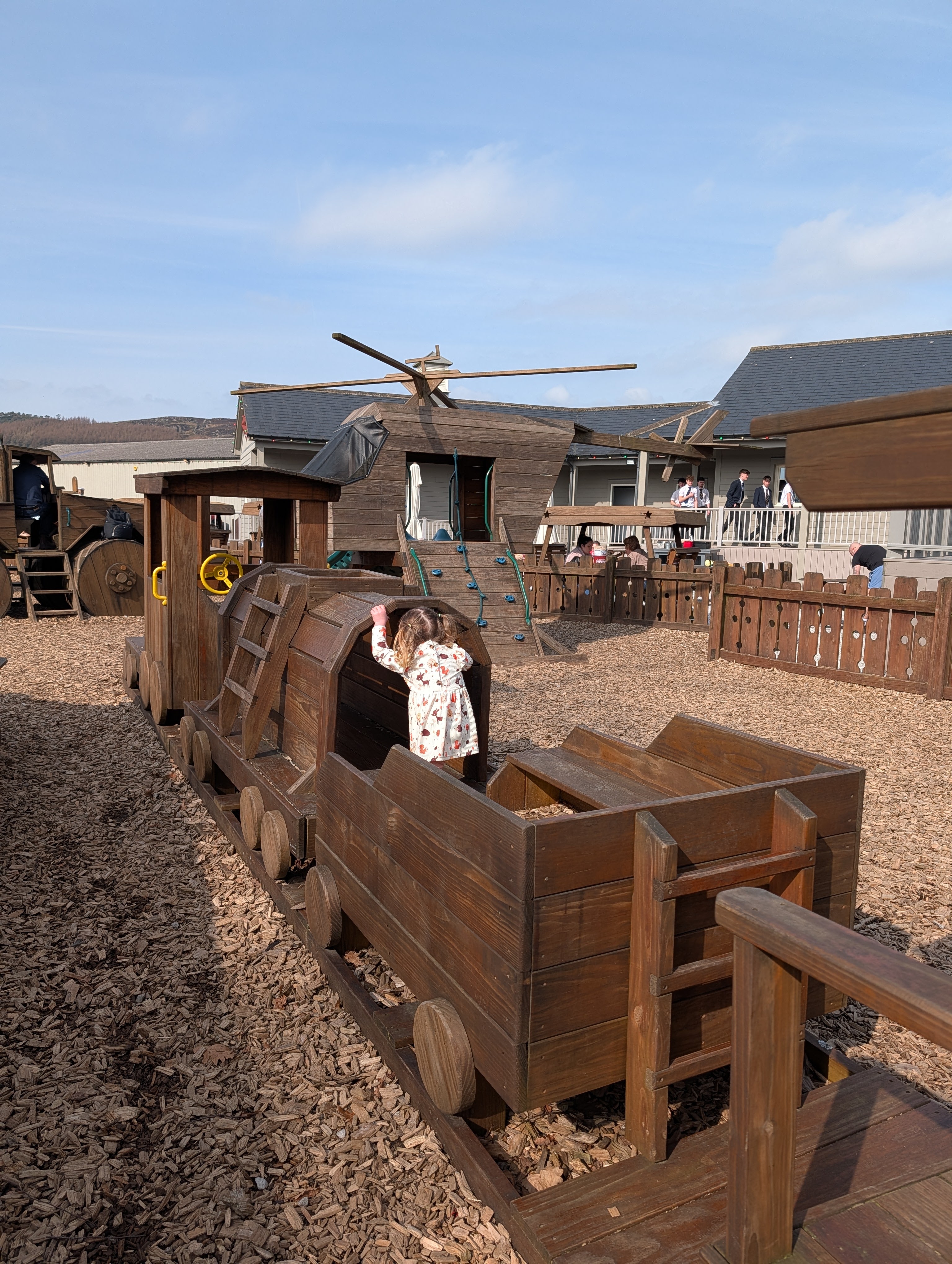 My 2 year old felt the slides were a bit too big for her so she didn’t go on any but luckily she enjoyed the swings. We all enjoyed exploring all the creations and driving the various ‘vehicles’. My favourite was the pirate ship and she particularly liked the little train!