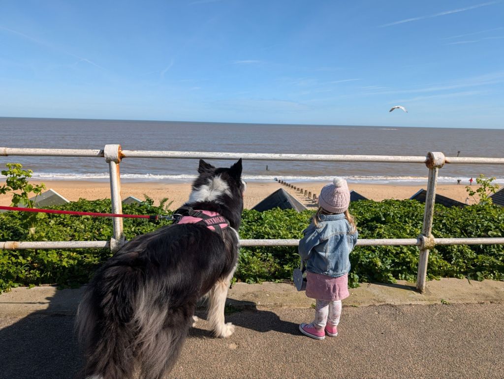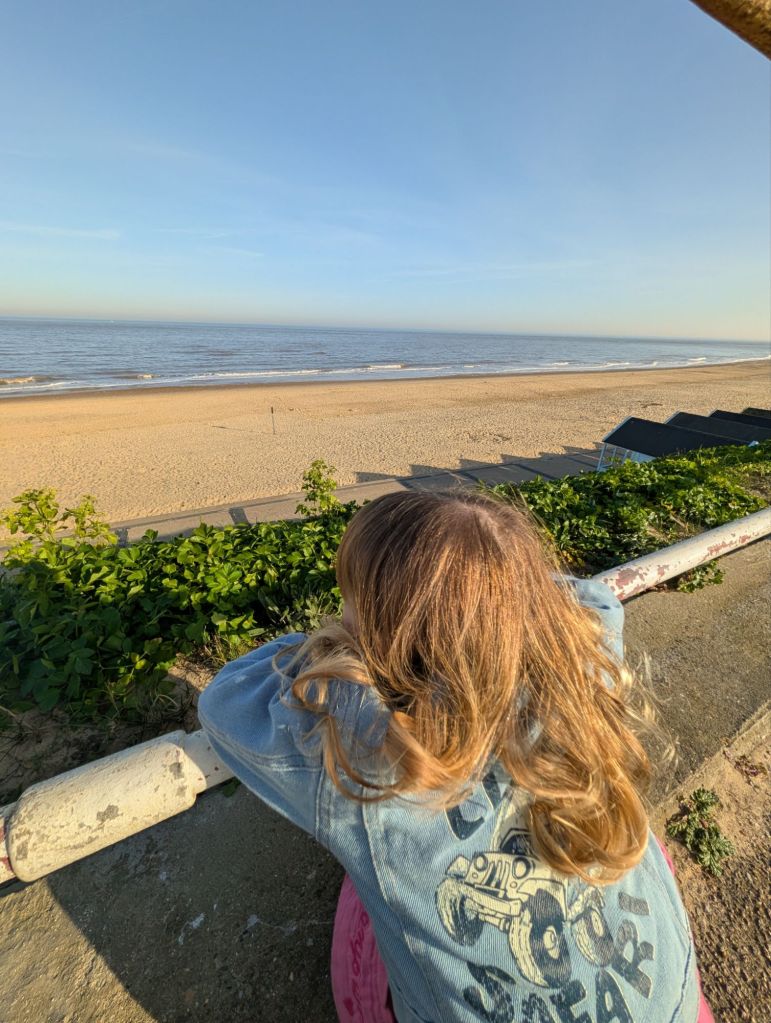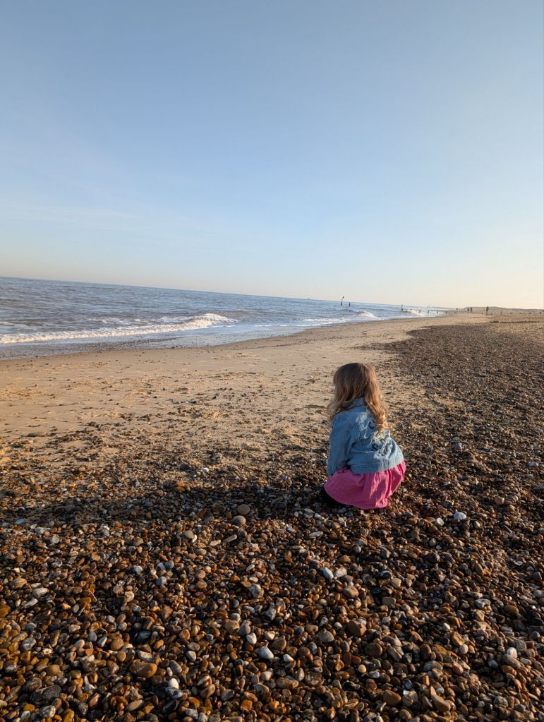 We got a chance to walk along the seafront again but this time aware of the signs, we didn’t take the dog on the sand. I had some lovely time with my daughter strolling along the beach whilst she hid from the waves.