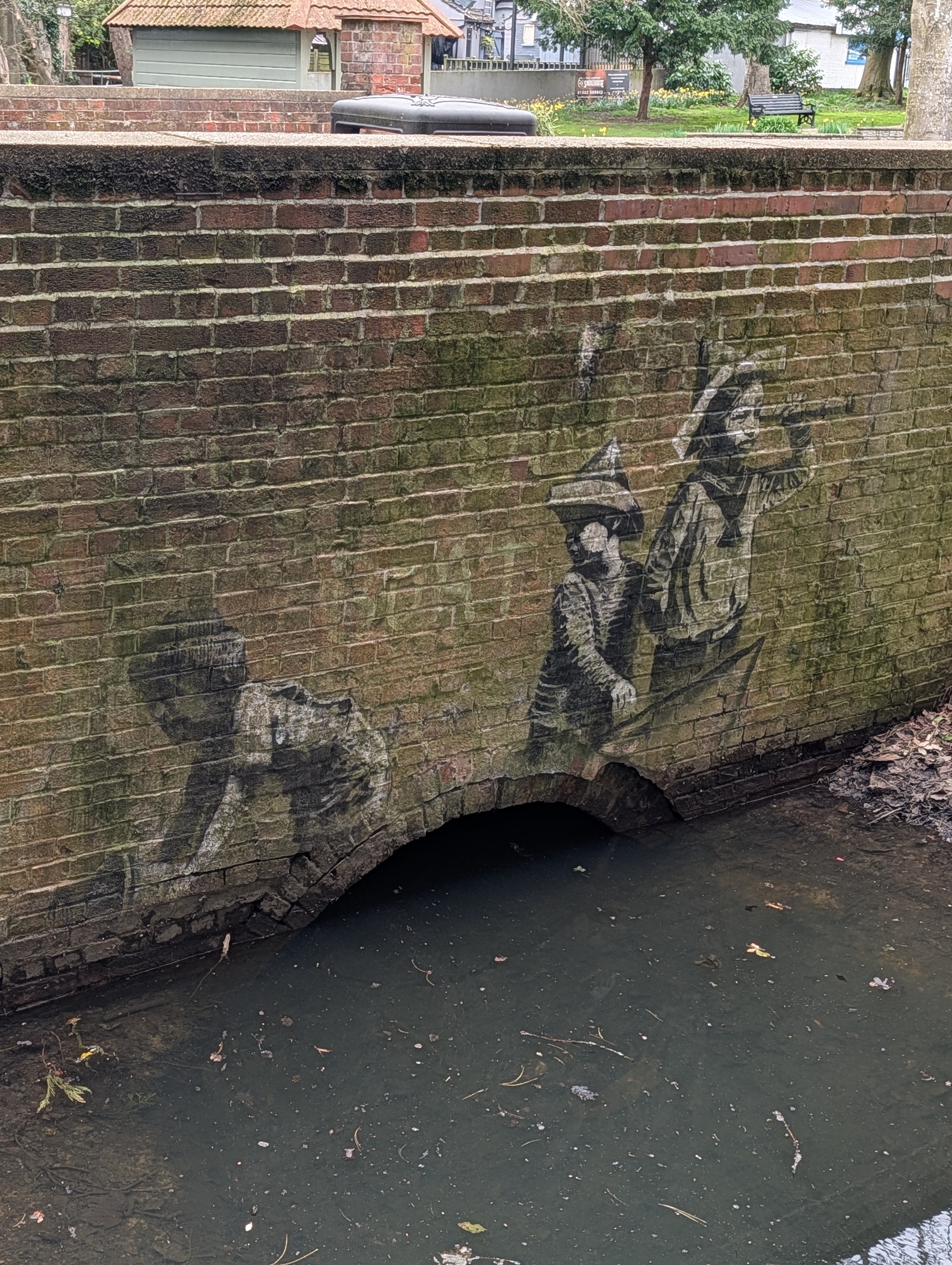 After we finished at the harbour we headed back towards the car. A plaque caught my attention as the title interested me. It said “Banksy Viewing Platform”. As we couldn’t see anything because the plaque was on the bridge I decided to investigate. Heading away from the bridge and looking back towards it on the other side of the plaque it was exactly what I’d hoped it was. A real Banksy! If you have never heard of Banksy you must be living under a rock but over in Yorkshire this isn’t something you come across every day. In fact in all my travels i’ve never seen any of Banksy’s artwork in person.